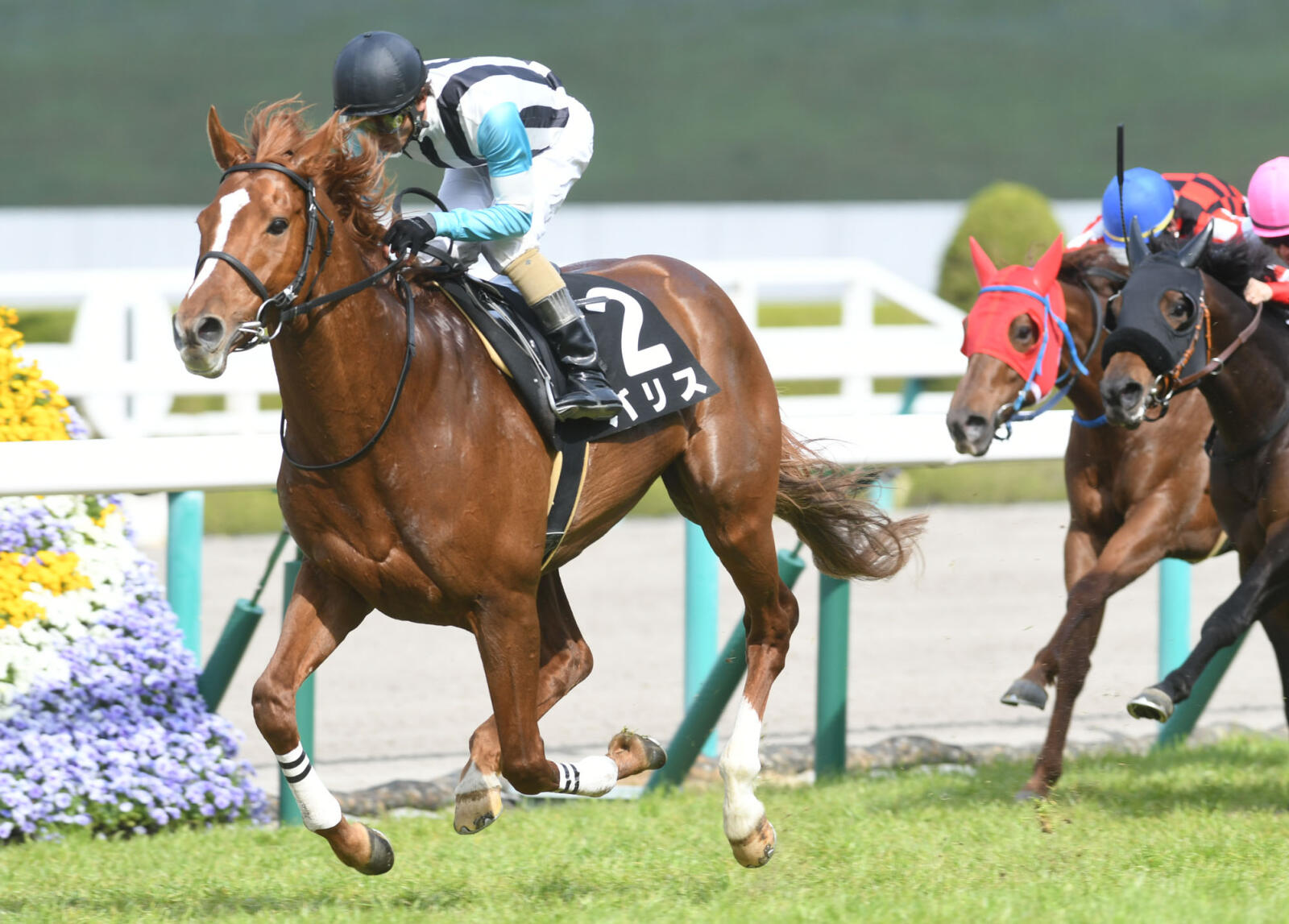 6 | 8 | 菱田裕二 | 57 | 14.9 | 10 | 4 | 4 | 芝1800 | 晴 | 良 | 1:49.4 | 1.2 | 5-4 | 35.1-35.6 | 36.5 | 486(0) | フェイマスエンド | |||
