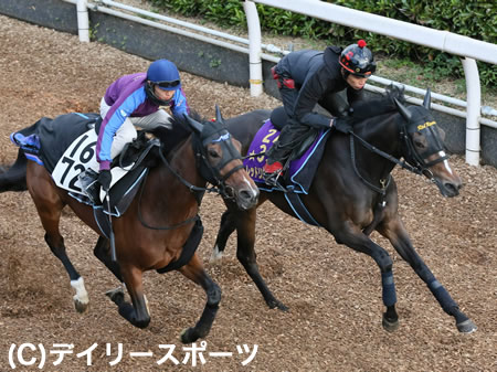栗東坂路で状態の良さを示したレッドリヴェール(右)