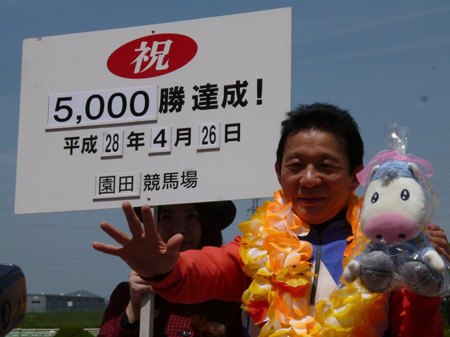 園田競馬での通算5,000勝達成は初の快挙で、地方競馬では佐々木竹見元騎手(川崎・7,151勝)、的場文男騎手(大井・6,857勝)、石崎隆之騎手(船橋・6,243勝)についで地方競馬では4人目、現役では3人目の偉業達成となる。