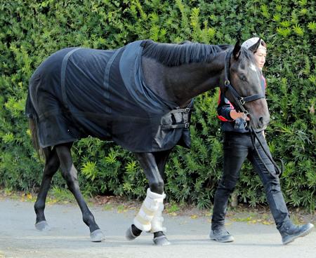 カレンチャン。「全然似ていない。おとなし過ぎて、競馬してみないと何とも言えない」と安田師はコメント。「ス