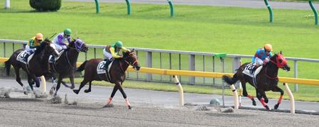 逃げ切ってメイクデビューを制したヴェルトゥアル(右)
