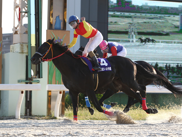 27日、名古屋競馬場で行われた第35回ゴールド争覇(3歳上・ダ1400m・1着賞金400万円)は、道中は中団後方に構えた大畑雅章騎手騎乗の2番人気