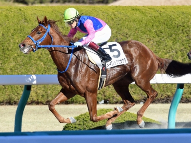 福永祐一騎手騎乗の5番人気メイショウヒサカタが勝利(c)netkeiba.com