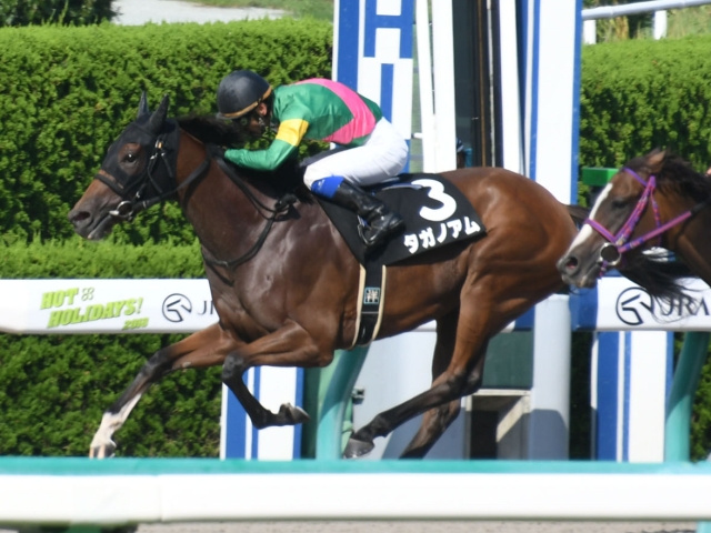 タガノアム(岡田祥嗣騎手)が勝利した。勝ちタイムは1分11秒1(稍重)。クビ差の2着に2番人気