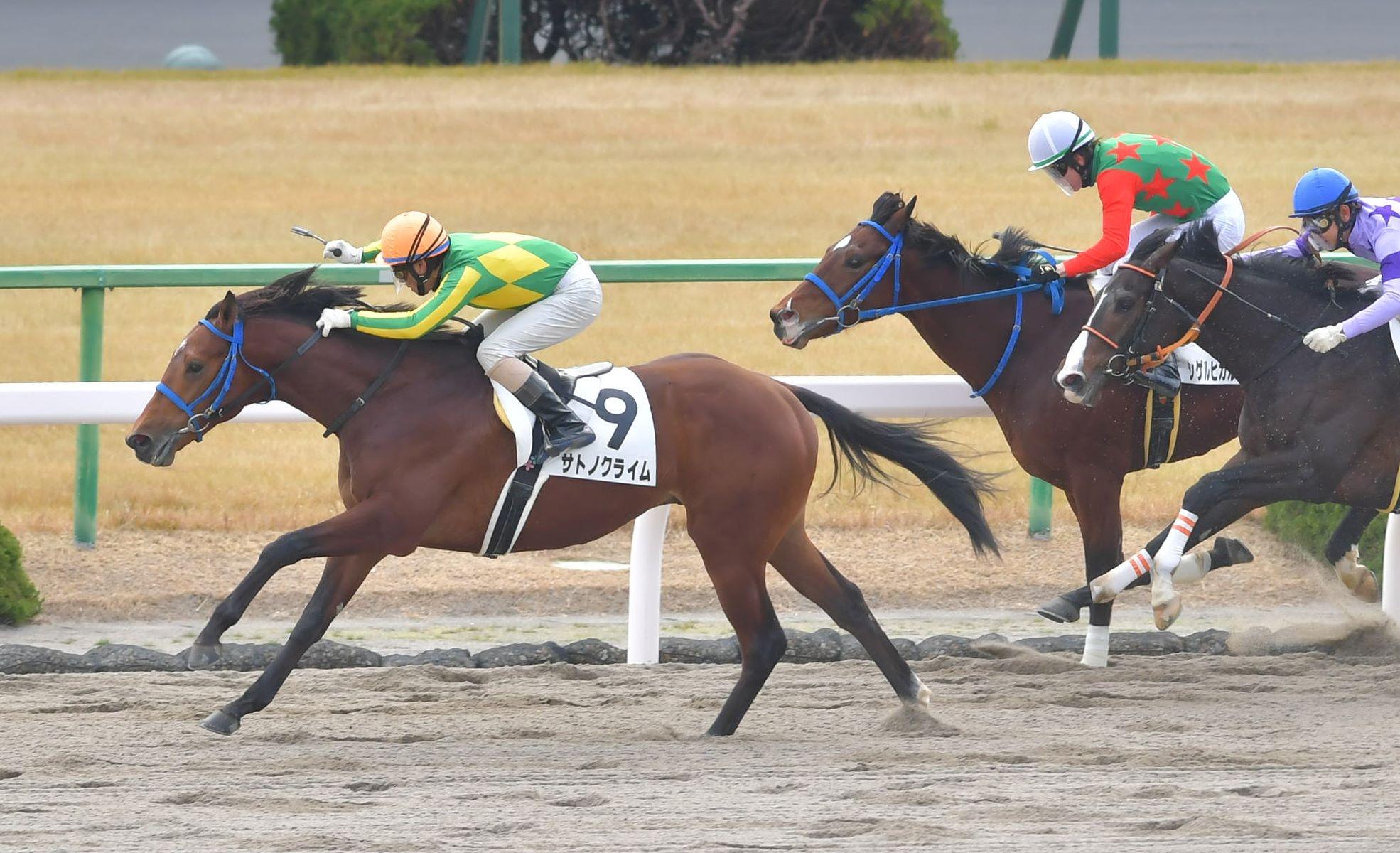 好位から抜け出すサトノクライム(左)=京都競馬場(撮影・石湯恒介)