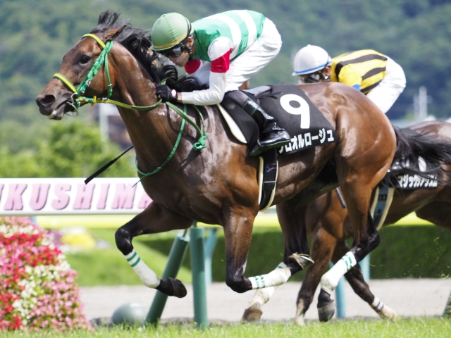 福島9Rの雄国沼特別(3歳以上1勝クラス・芝1800m)は1番人気