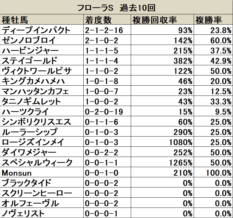 フローラS 種牡馬データ