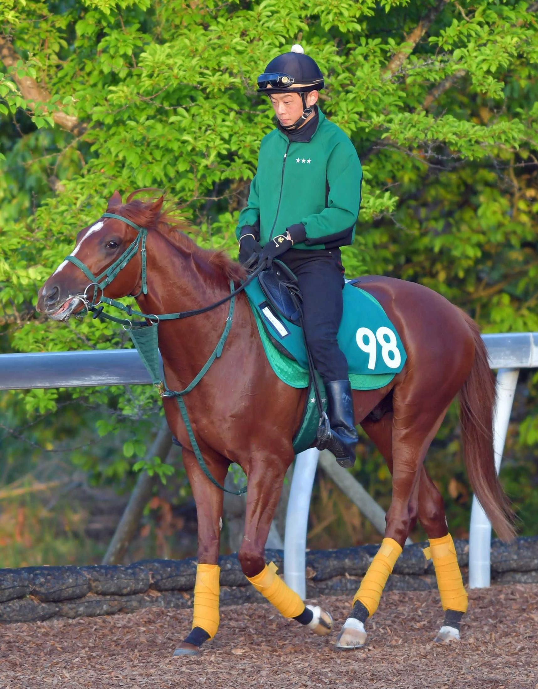 シルエットは父に似ている。馬体重は430キロ台。新馬向きのタイプです」。父の背を追いかけ、初陣Vを狙う。