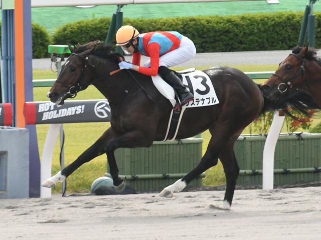 サステナブル(牡2、栗東・長谷川浩大厩舎)が、直線で外の1番人気