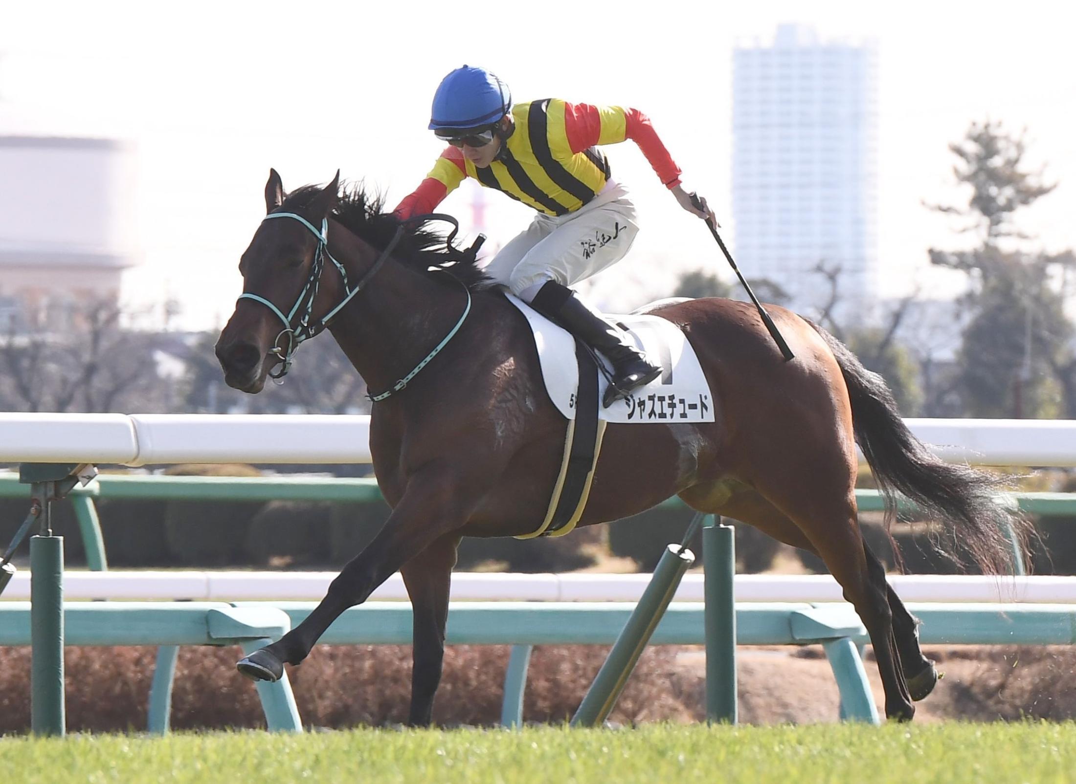 5R・2歳新馬戦を制したジャズエチュード(撮影・園田高夫)
