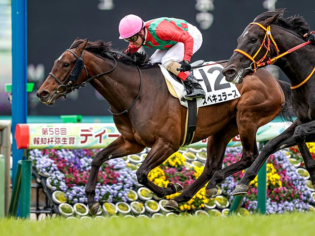 勝利するも騎乗停止となったM.デムーロ騎手(撮影:下野雄規)