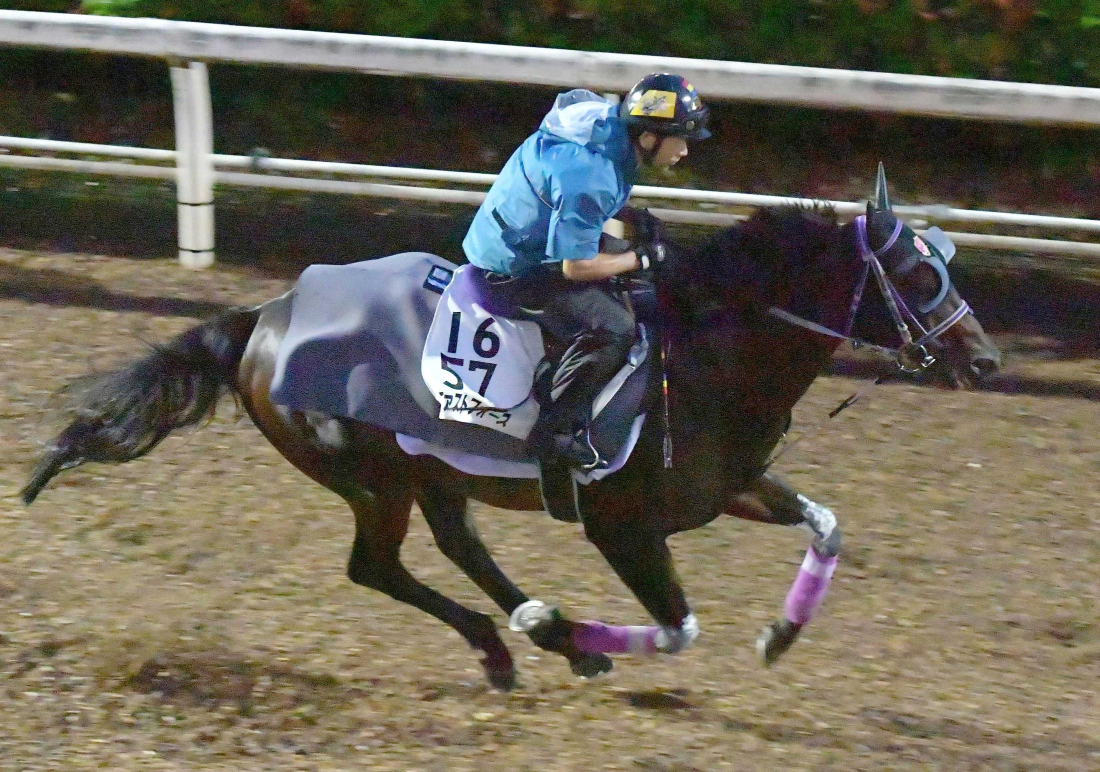 今回と同じ舞台の前走を、驚異的なJRAレコード(1分6秒0)で勝利。しかし、下川助手は「120%恵まれたからね」と超高速馬場の恩恵を強調する。「今回はメンバーも強いし、逃げる馬との兼ね合いも鍵。爪が浅いので、(雨が残って)ノメる馬場もどうかな」と慎重な姿勢だ。ただ本質的には不得手だとしても、重馬場での1勝クラスVは誇れる実績。こなしてくれると信じたい。