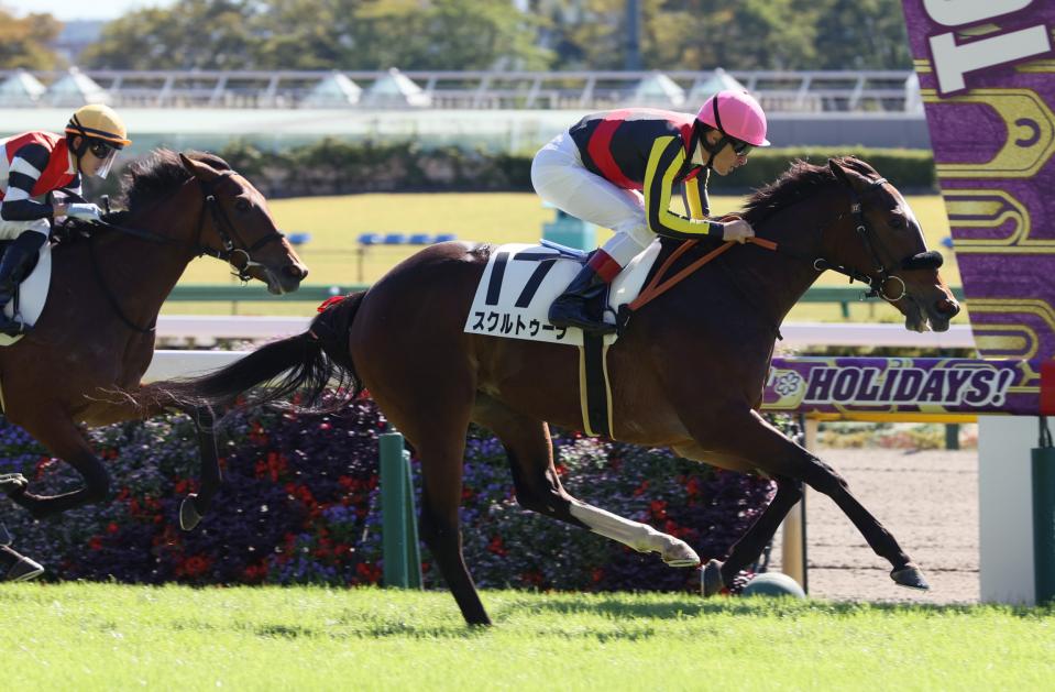 スクルトゥーラ(牝、美浦・鹿戸)が快勝。残り1Fで先行3頭をまとめて差し切った。