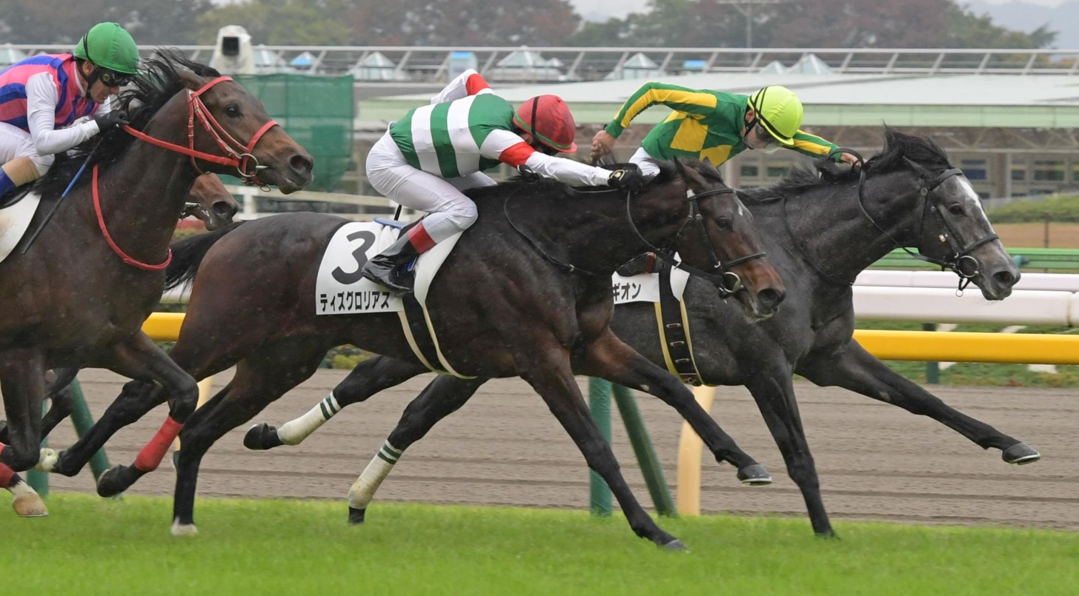 メイクデビュー東京を制したティズグロリアス(手前)=撮影・三好信也