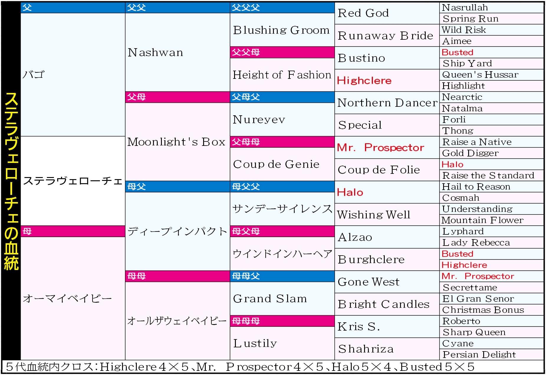 ハイクレアの孫に当たり、つまりはディープインパクトの近親という間柄。恐らく爆発力の源はここにあり、当然、ラストランでの連覇の期待は大きい。
