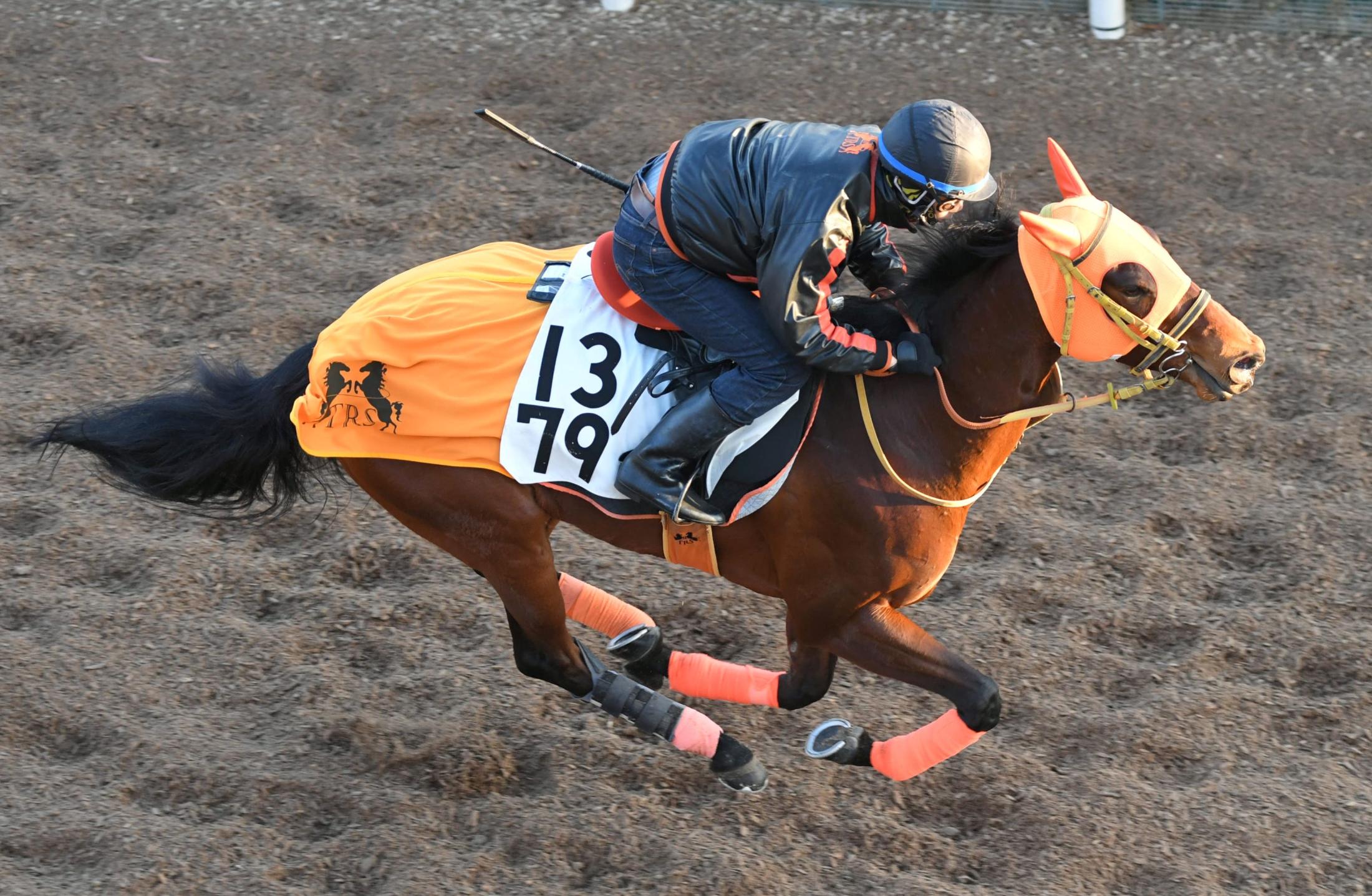栗東坂路で追い切るドナウデルタ(撮影・北村雅宏)