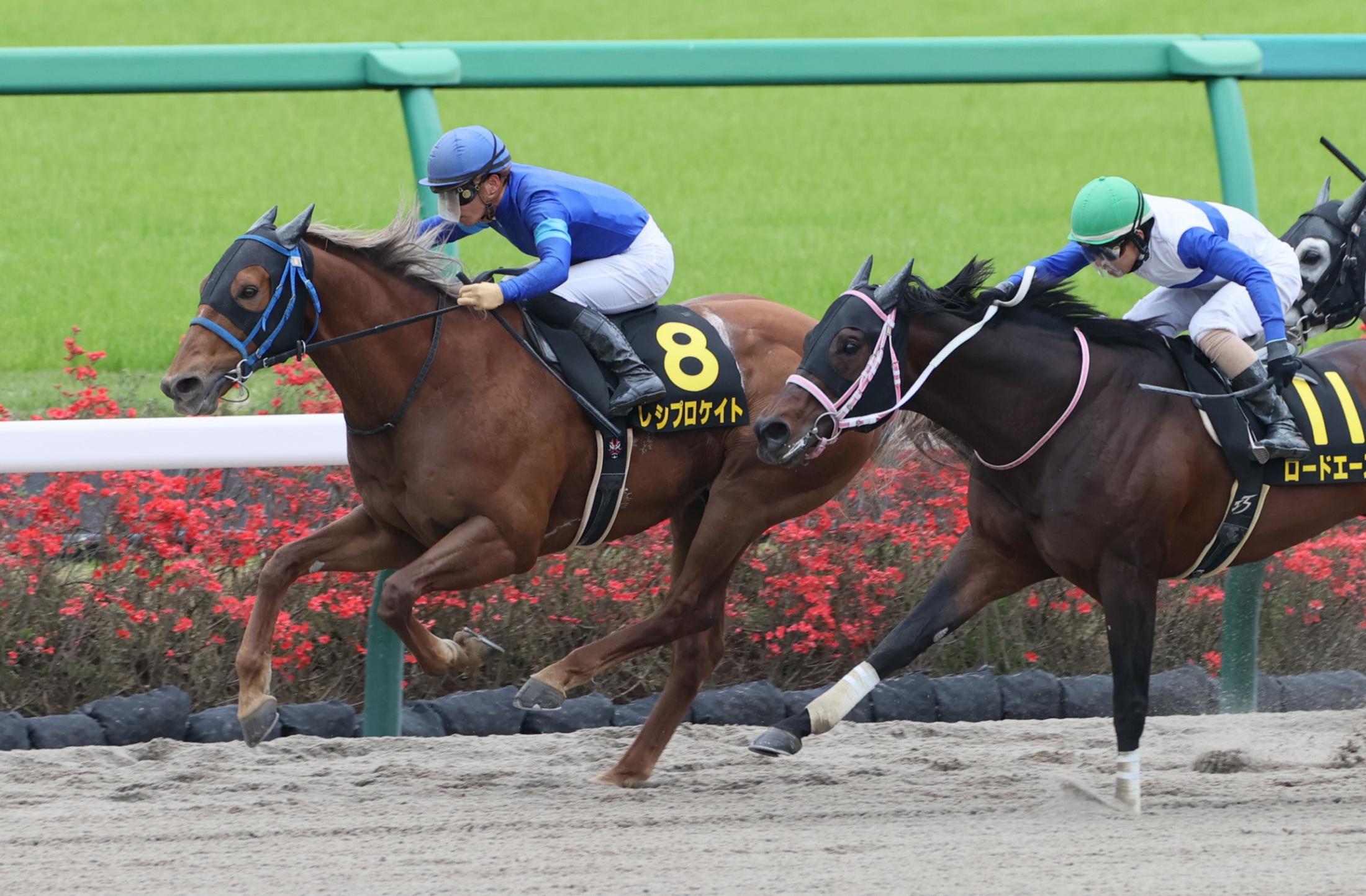 馬群を割って抜け出すレシプロケイト(左)