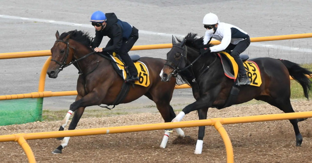 キルロード(左)は併せ馬で順調な仕上がりをアピール(撮影・三好信也)
