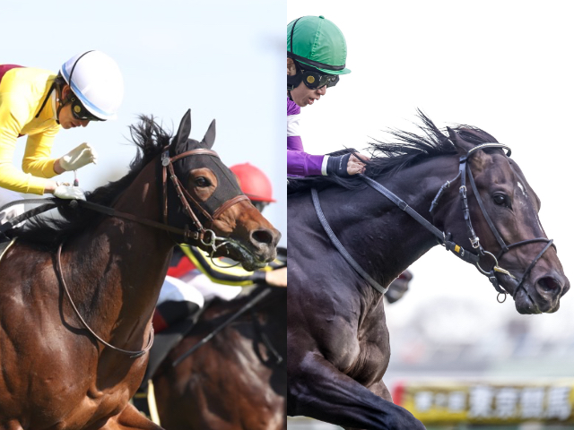 関屋記念に出走するピースワンパラディ(左、撮影:高橋正和)、イルーシヴパンサー(右、撮影:下野雄規)