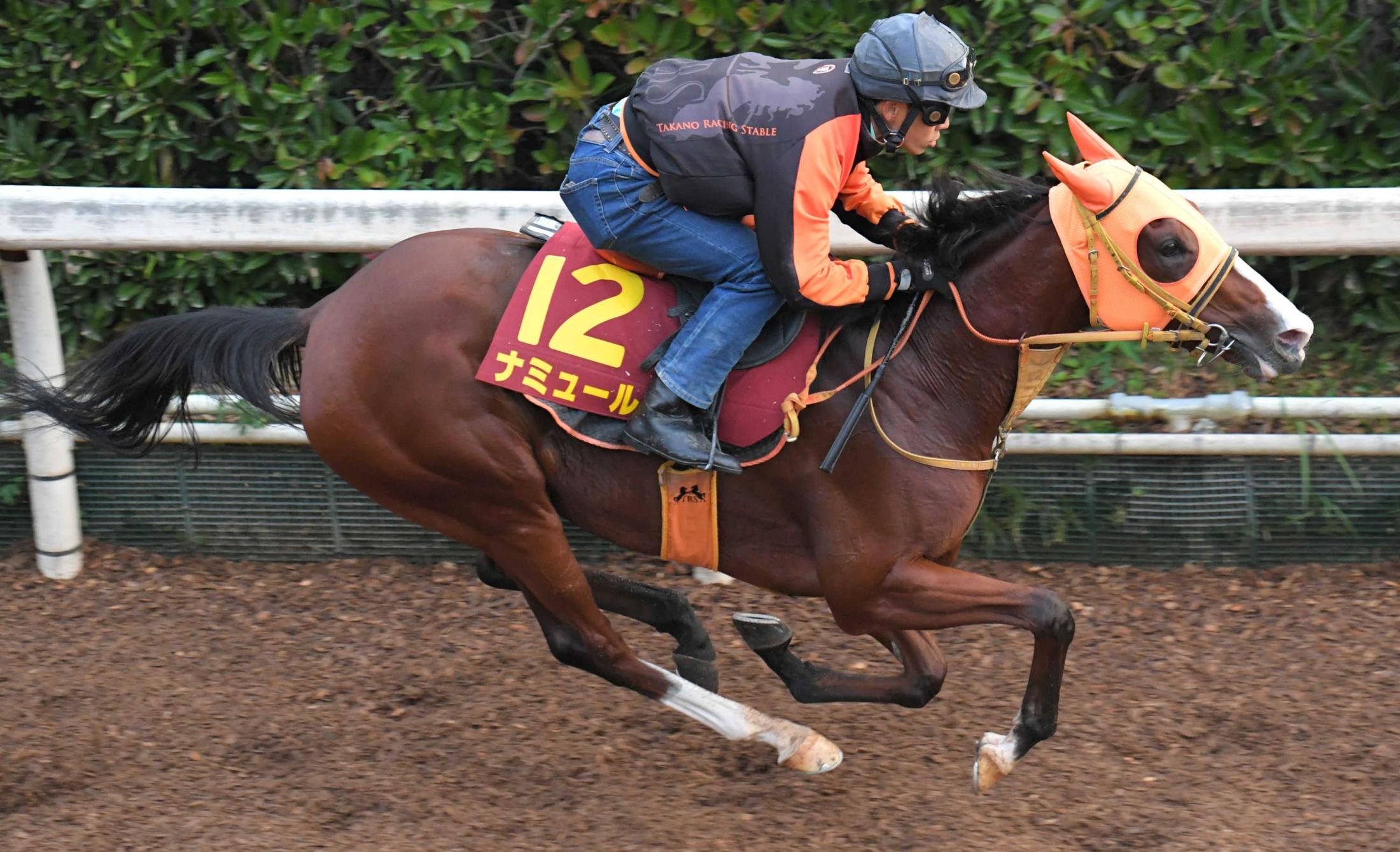 ナミュールは12日、栗東坂路でリハーサルに臨み、しっかりした加速ラップを計時。4F54秒1-38秒9-11秒9でまとめ、戦う準備を整えた。躍動感に満ちたフットワーク、小柄でもボリュームのある馬体。