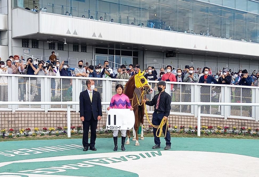 聖奈は「前走でも勝たせてもらっているので、いいイメージで乗ることができました。休み明けでしたが、先週の追い切りに乗せていただいて、調子がいいと感じていたし、馬の状態も良かったです。関係者の方々に感謝したいです」と語った。