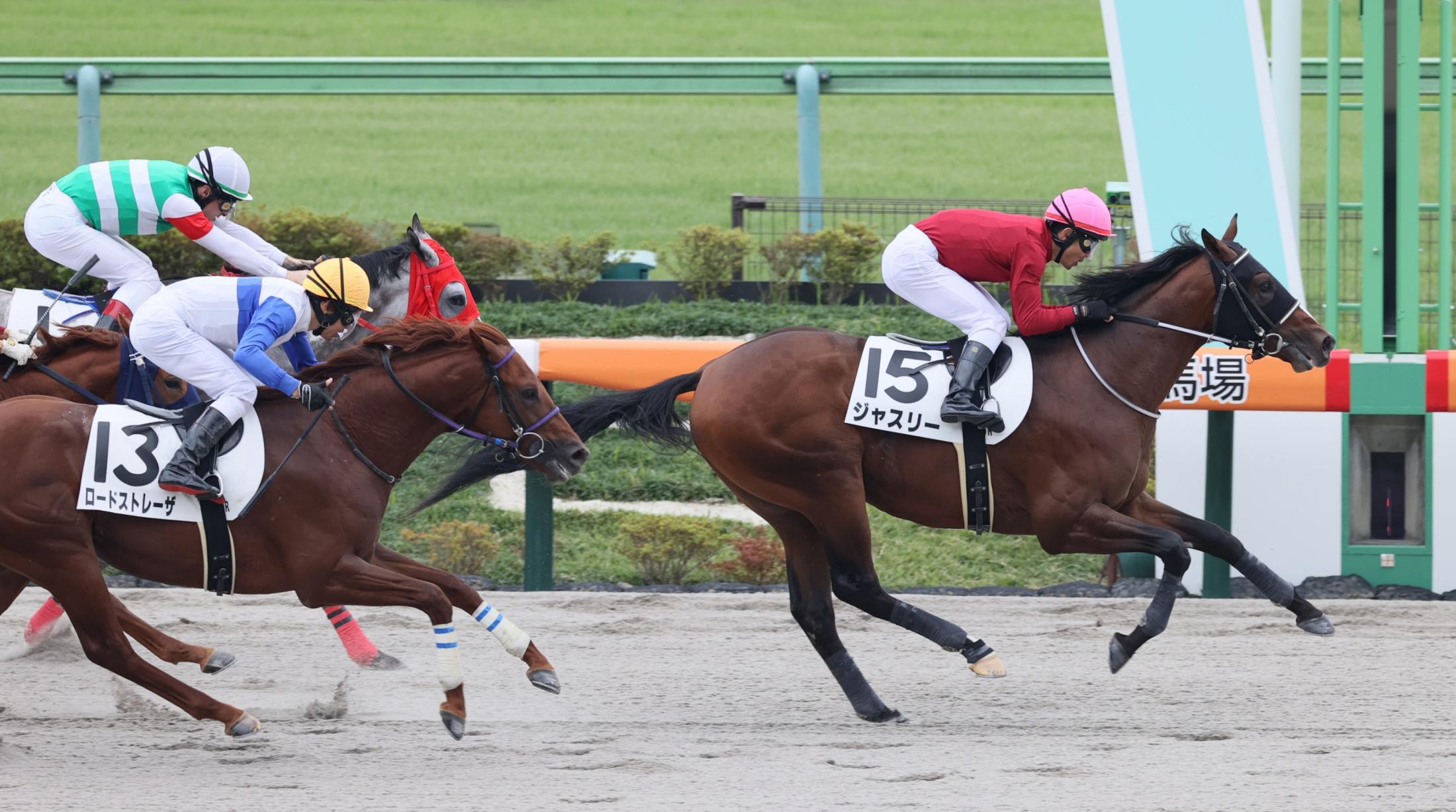 新馬戦を快勝したジャスリー(右)