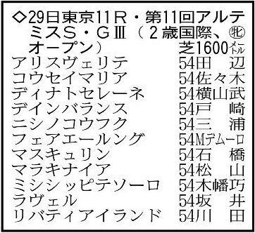 第11回アルテミスステークス・G3は10月29日、東京の芝1600メートルで行われる。