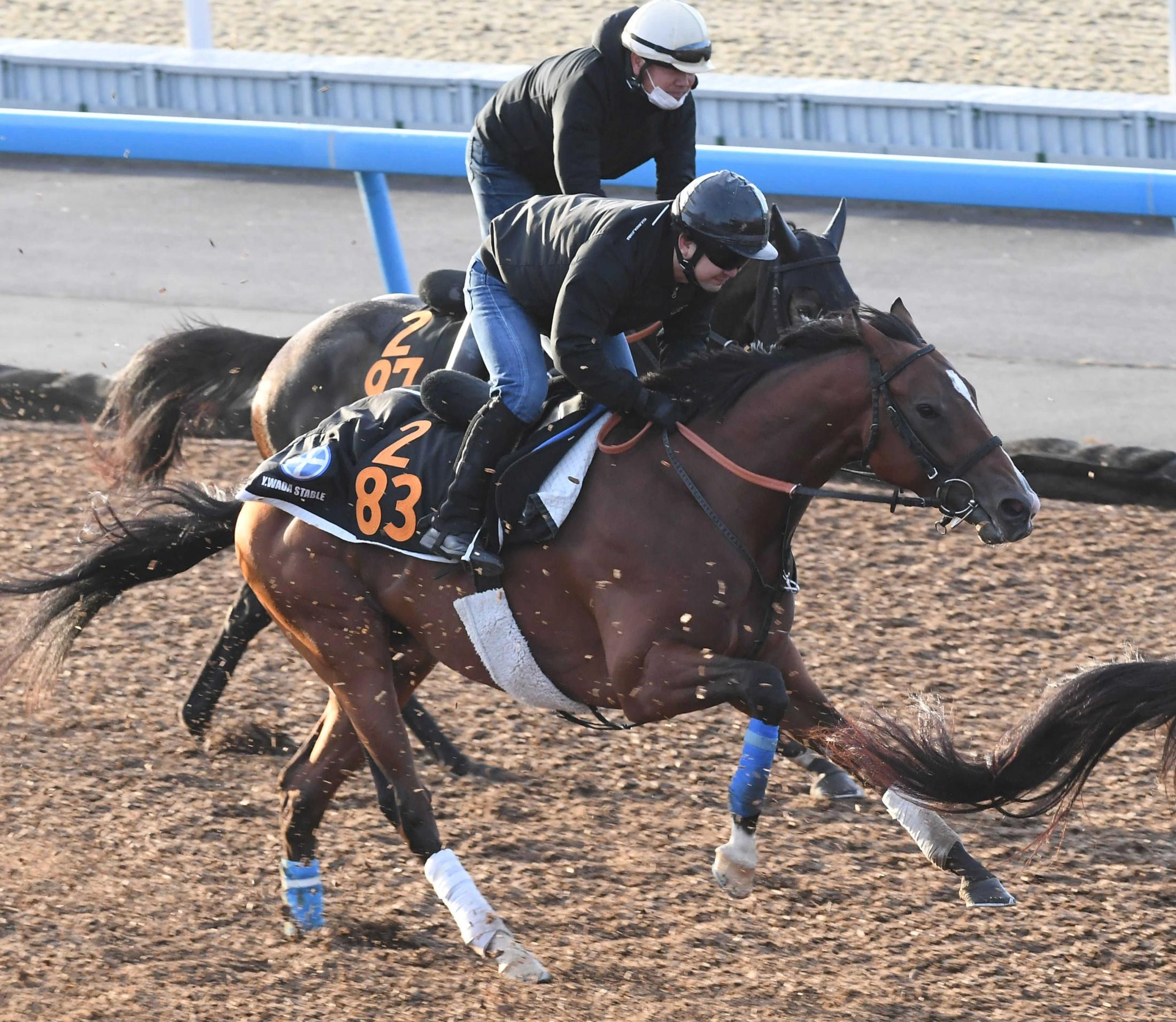 美浦W坂併せで追い切ったオールパルフェ(手前)=美浦トレセン(撮影・三好信也)