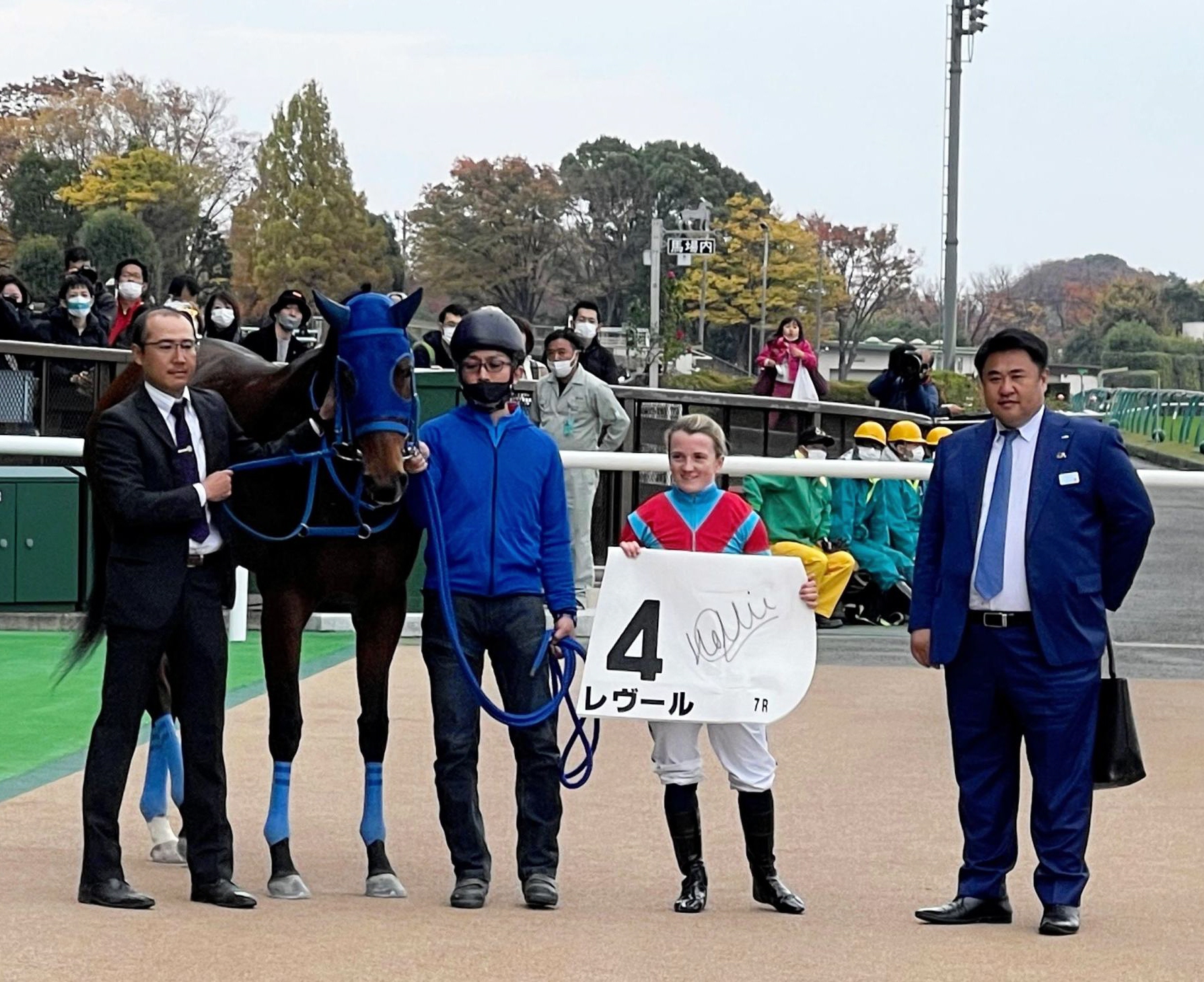 レース後のセレモニーでは、同じく短期免許を取得して来日した夫のトム・マーカンド騎手(24)が、初勝利達成のプラカードを持って祝福。「すごく特別な1勝になりました」と笑顔をのぞかせた。「トムが一番ホッとしていると思います。これで私がグチを言うのを聞かなくて済むから(笑い)」とニッコリ。仲むつまじく勝利の喜びを分かち合っていた。