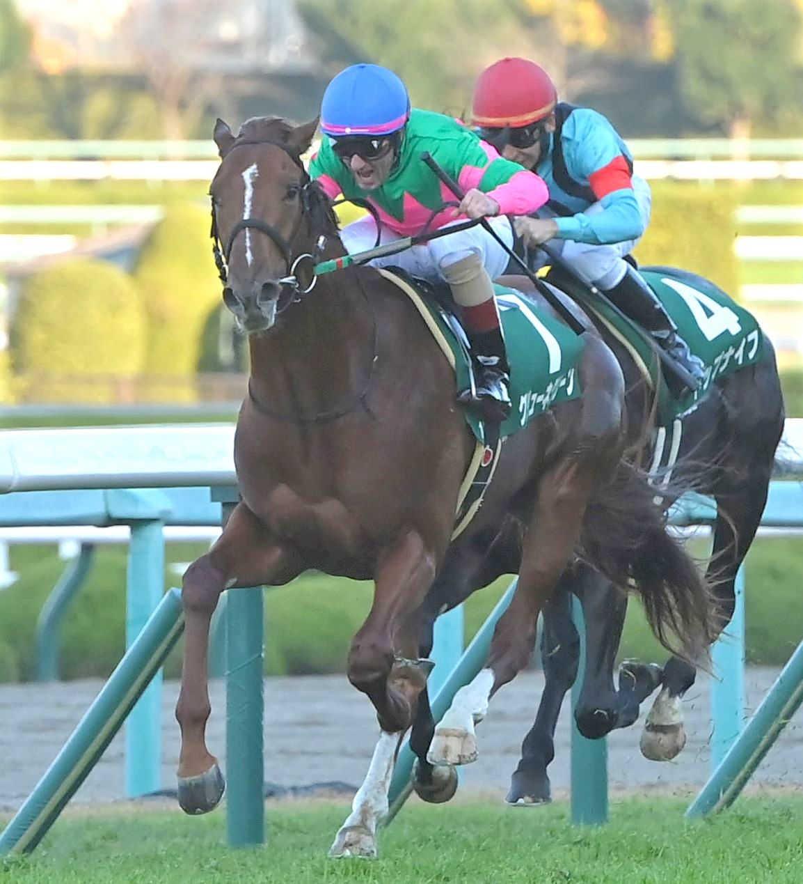 後続を振り切ったグリューネグリーン(撮影・高部洋祐)