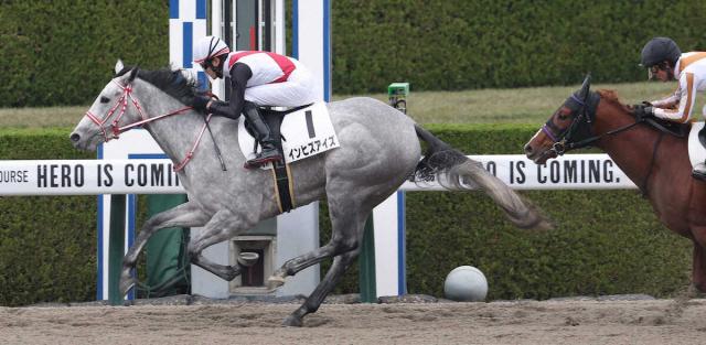 <阪神6R>逃げ切り勝ちするインヒズアイズ(左)(撮影・亀井 直樹)