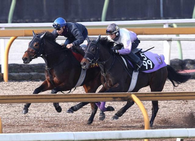 吉田隼人を背にCウッドをセレッソデアモール(右)と併せ馬で追い切るドゥアイズ