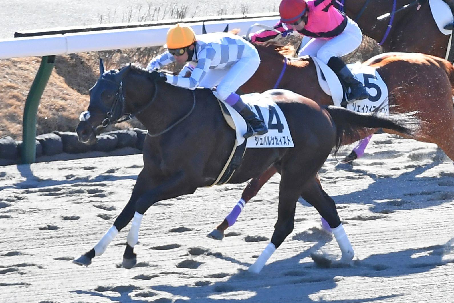 シュバルツガイストが好位から抜け出し、5戦目で初勝利を挙げた。騎乗した武豊騎手(53)=栗東・フリー=は9年連続の開幕日V。1RVは20年京都(3歳未勝利戦=