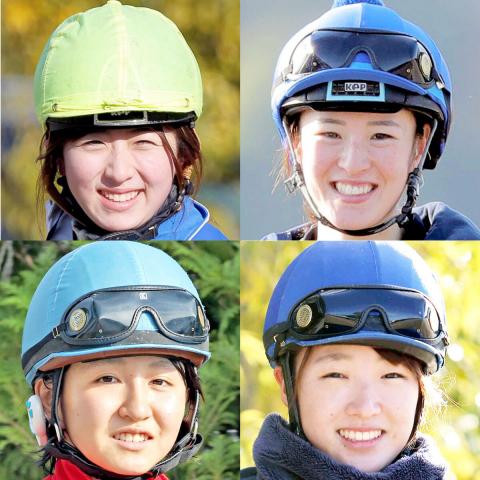 (左上から時計回りに)今村聖奈騎手、藤田菜七子騎手、永島まなみ騎手、古川奈穂騎手
