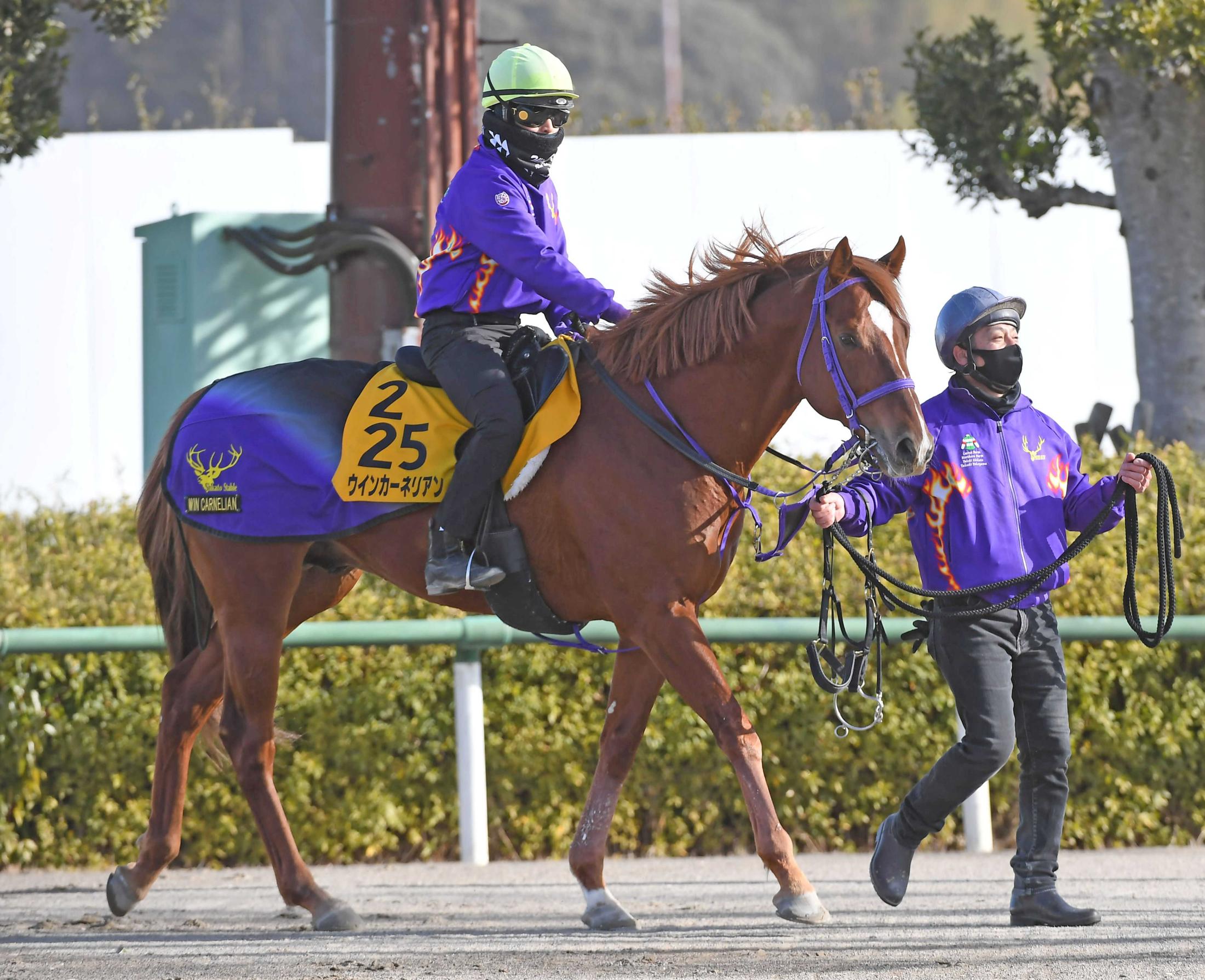 ウインカーネリアンが、秘策を練って今年初戦に挑む。それはホライゾネット(パシュファイヤー)の装着。メンコの目穴部分をネットで覆った馬具。前を走る馬が跳ね上げる砂が目にかかるのを嫌がる馬や、視野を制限することで競走に意識を集中させる効果を期待している。