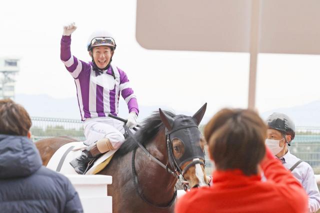 酒井騎手は「レース前に先生(飯田雄調教師)がボソッと『砂をかぶらなかったらいいな』と。勢いがついたのでハナに行きました。ハミが抜けるたびに見せムチをすると反応してくれたので、まだ余力もあるんだろうなと感じました。仕上がり切っていない中でこれだけ走れるのですから、先が楽しみです」と声を弾ませた。