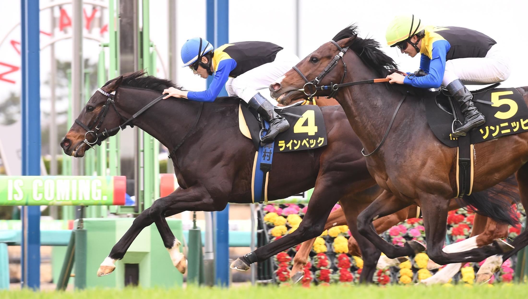 ゾンニッヒ(右)の追い込みをかわしたラインベック(撮影・園田高夫)