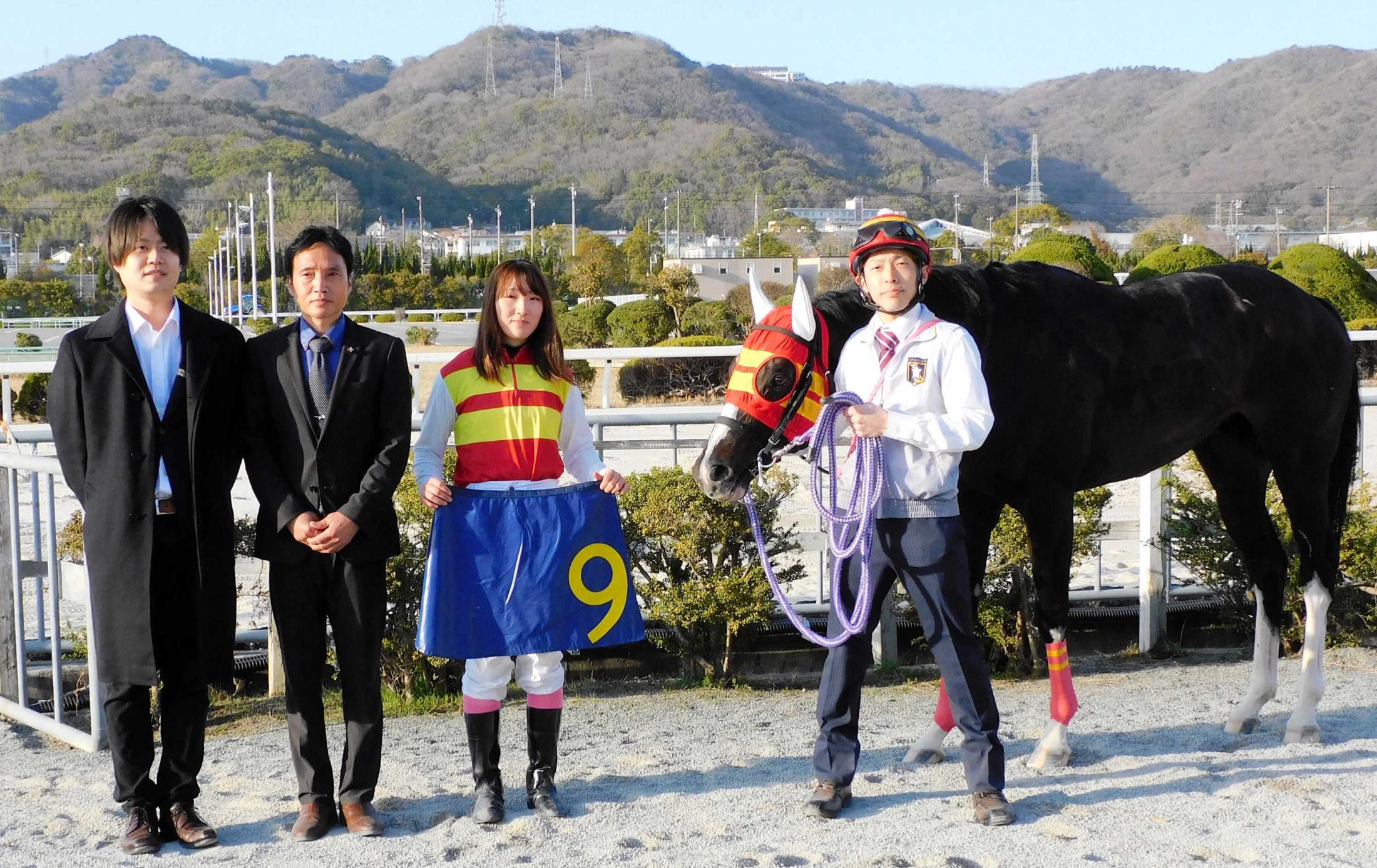 12Rを勝った永島まなみ(左から3人目)と太郎調教師(同2人目)
