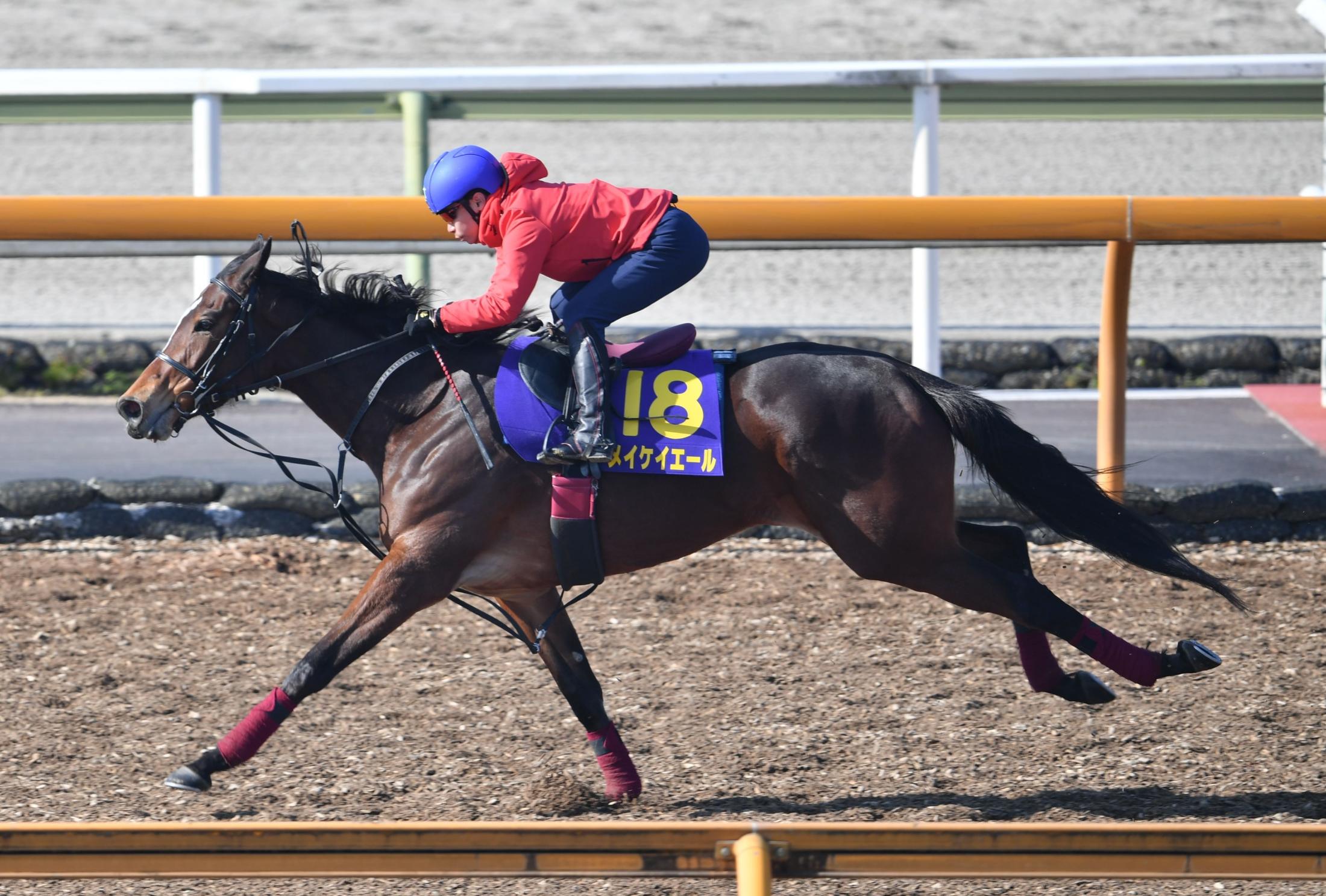 メイケイエールは15日、池添を背に栗東CWを単走。序盤こそ行きたがる素振りを見せたものの、3角過ぎには折り合って4F47秒0-34秒4-11秒7の好時計をマーク。悲願のG1制覇に向け、海外帰りでも順調な仕上がりをアピールした。