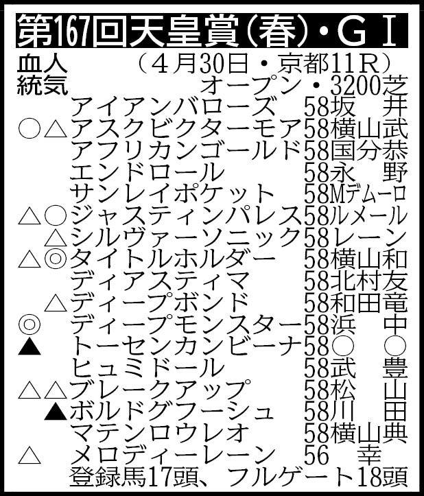 「天皇賞(春)・G1」(30日、京都)