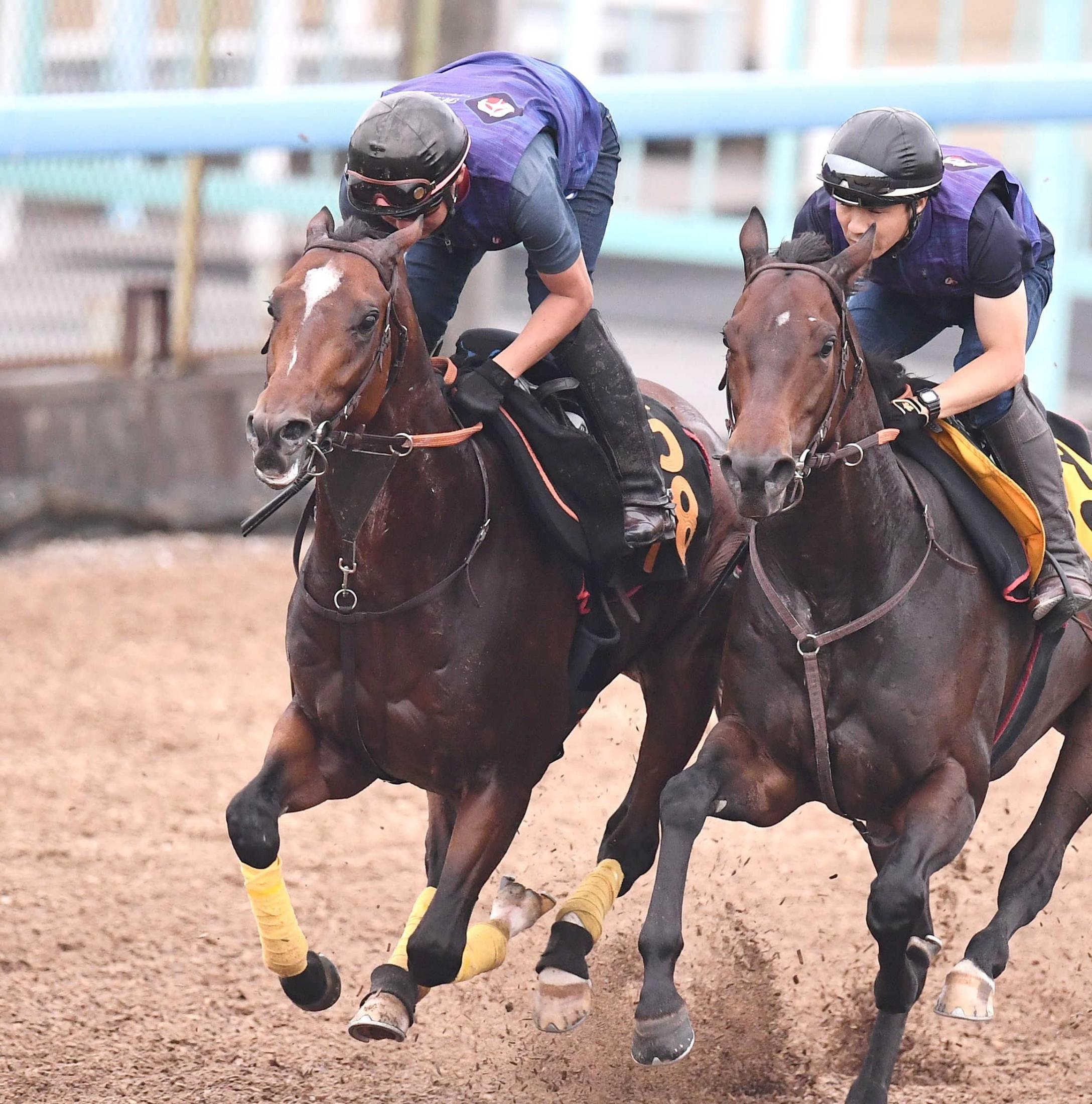 美浦Wで好ムードを漂わせたレーベンスティール(左)=撮影・園田高夫