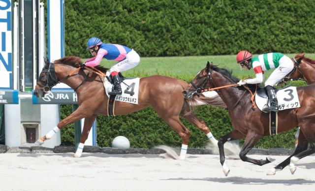 逃げ切りでデビュー勝ちを決めたメイショウキルギス(撮影・坂田 高浩)