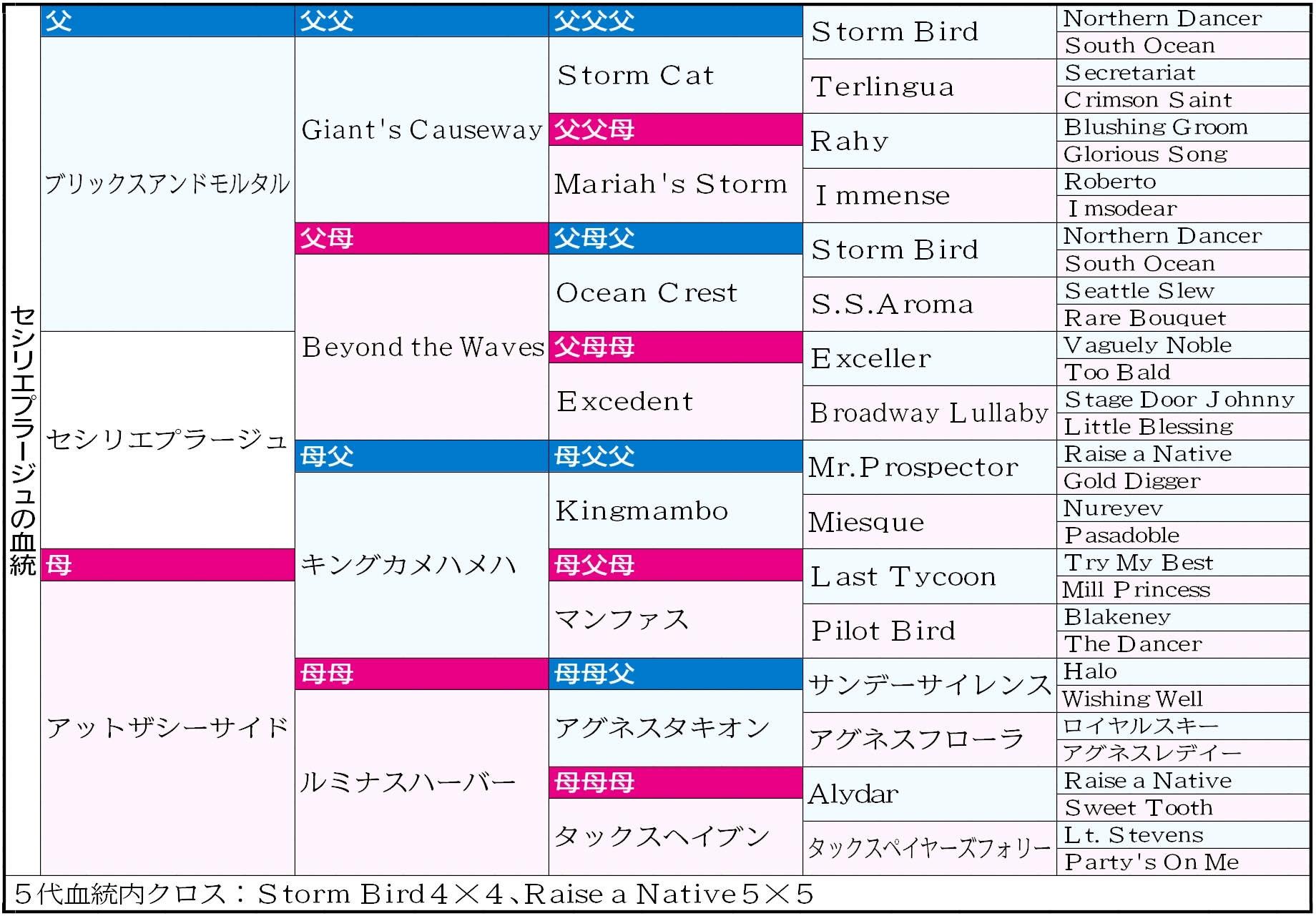 シンハライトの3着に健闘。重賞タイトルには手が届かなかったが、アグネスタキオン-キングカメハメハの血が加わった牝系の確かな進化を示した。