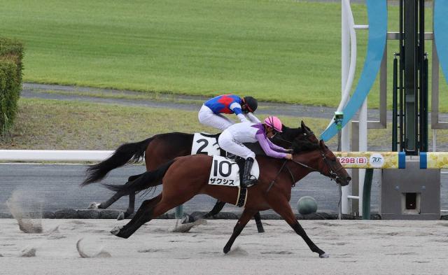 <中京4R>ゴール前で差し切り勝利した団野騎乗のザクシス(撮影・椎名 航)