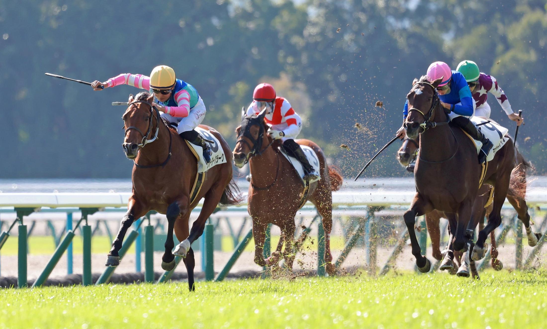 新馬戦を快勝したウォータークラーク(左)=撮影・石湯恒介