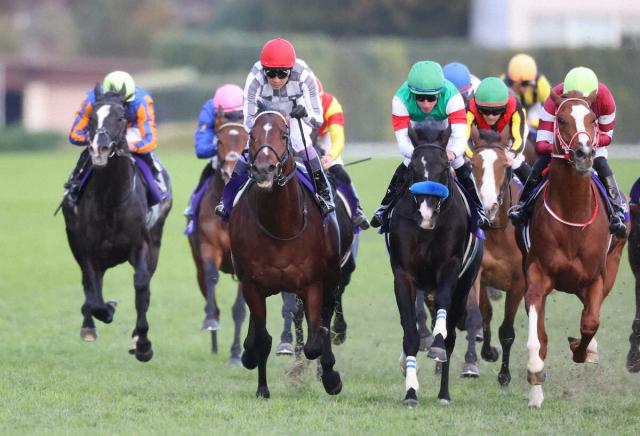 <東京12R・ジャパンC>レースを制した(3)ドウデュース(左から3頭目)。手前右から2着同着の(7)シンエンペラー、(10)ドゥレッツア。左端はオーギュストロダン (撮影・村上 大輔)