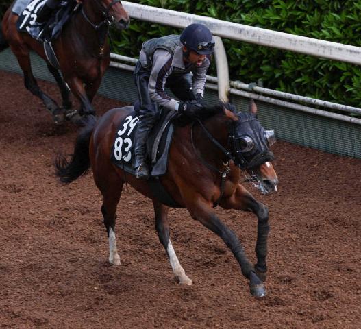 坂路で追い切るトッピボーン(撮影・中辻 颯太)
