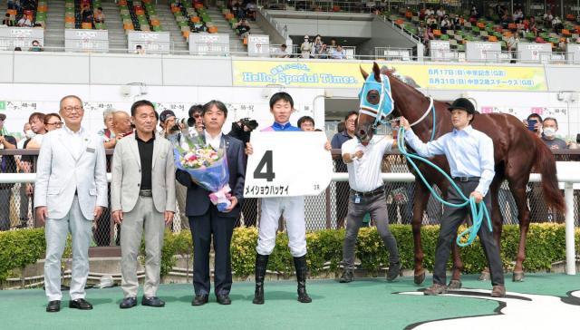 オーナーに代わり花束を受け取り、口取り写真に加わった息子の松本好隆氏は「家で見ていて、電話したら喜んでました。先週勝ちたかったけど、ようやく勝てましたね。50年以上(馬主を)やっているし、その積み重ねだと思います」と記念星をかみしめていた。