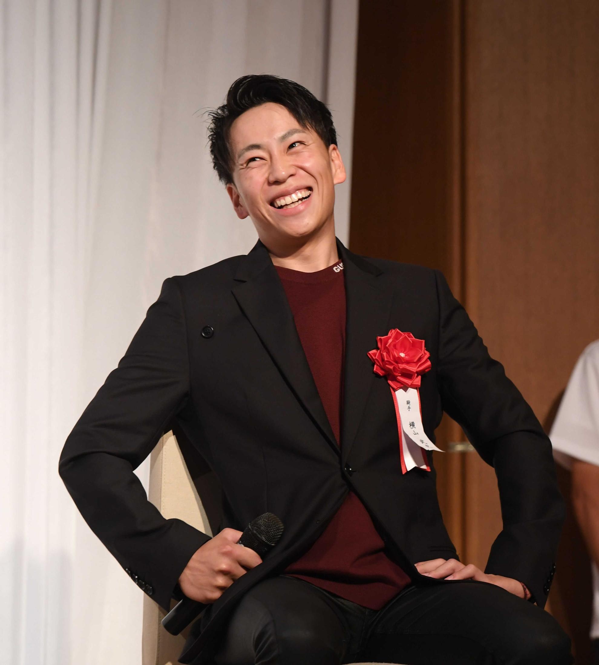 トークショーで笑顔を見せる横山武(撮影・園田高夫)