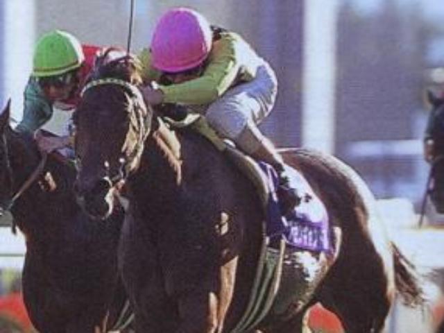 続く00年も意外な結末となった。前年とは一転、前半1000mが60秒8のスローペース。この恩恵を受けたのが内枠と先行馬だった。後方待機組の人気馬が伸びあぐねる中、軽快に逃げた
